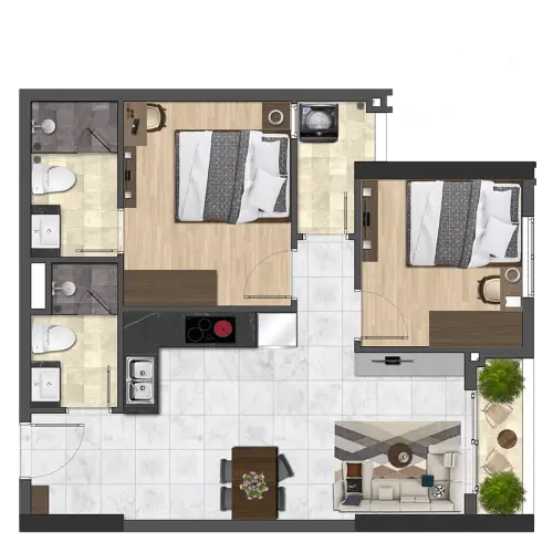 2 phòng ngủ